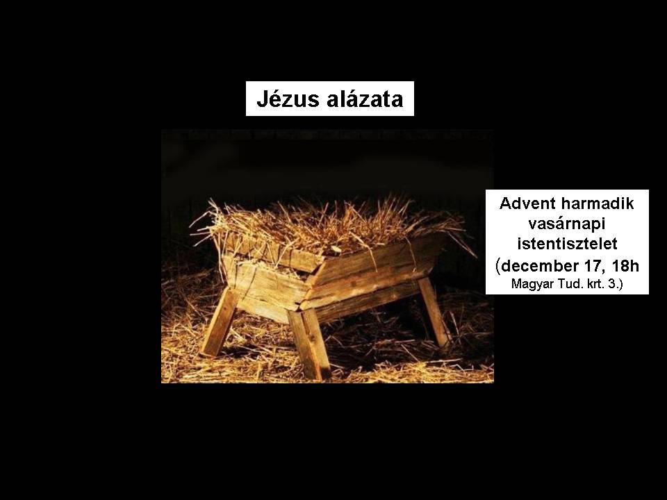 Mi minden emberi nyomorúságot (mint például az éhezést, a fázást, a hascsikarás fájdalmait – hogy most a hascsikarás megoldódásának a következményeiről ne is beszéljünk…) kellett egy csapásra elviselnie a földre született preegzisztens Istennek, Jézusnak? Miért döbbenhettek rá mégis a pásztorok arra, hogy az a csecsemő a várva várt Messiás, akit megtaláltak? Csak a jászol miatt vajon? Hogyan jelentkezett az alázat Jézus felnőtt életében? Miért a pásztoroknak hirdettetett elsőként az evangélium? Mire tanít mindez minket? Hogyan gazdagíthatja mindez az adventi, a karácsonyi készülésünket -- és az egész életünket? Erről szólt az advent 3. vasárnapján tartott istentiszteletünk igeszakasza (Fil 2,5-7) és az igehirdetés. Az igehirdetést itt lehet meghallgatni és a szövegét innen lehet elolvasásra letölteni.  Karácsonykor (amely idén egyben advent negyedik vasárnapja is) video áhítat jelnik meg itt: https://www.youtube.com/@csermelylelkesz. Január 1-én, hétfőn este 6-kor személyes újévi áldásra várunk minden felsőoktatásban tanulót, vagy oktatót vagy oda készülő középiskolást a MEÖT székházban!