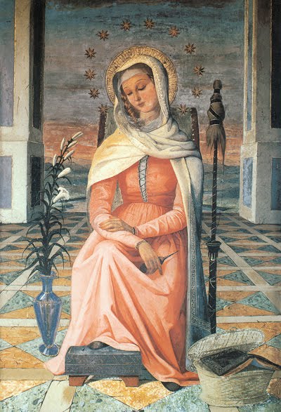 1. Isten és Jézus terének néhány alkalmatlan szóval történő jellemzése után álljon itt Szűz Mária teréről (hasonlóan avatatlan) néhány szó. Szűz Mária tere sokkal bensőségesebben személyesebb és intimebb, mint az Atya vagy Jézus tere. Szűz Mária terében elképesztően nagy, és az érzelmi skálán is hihetetlenül kifinomult figyelem irányul ránk. A tisztaság teljességének valami olyan sugárzása von körül bennünket, amely máshoz nem hasonlítható. Az alázatban átélt megértés és a tisztaság Teljessége találkozik itt a mi bűnökkel telt töredékességünkkel, amely bennünk is mérhetetlen alázatot és szeretetet teremt. Tolkien írta: "Teljes mértékben a Szűzanyából fakad az, ahogyan a fenségességben és az egyszerűségben rejlő szépséget érzékelem."